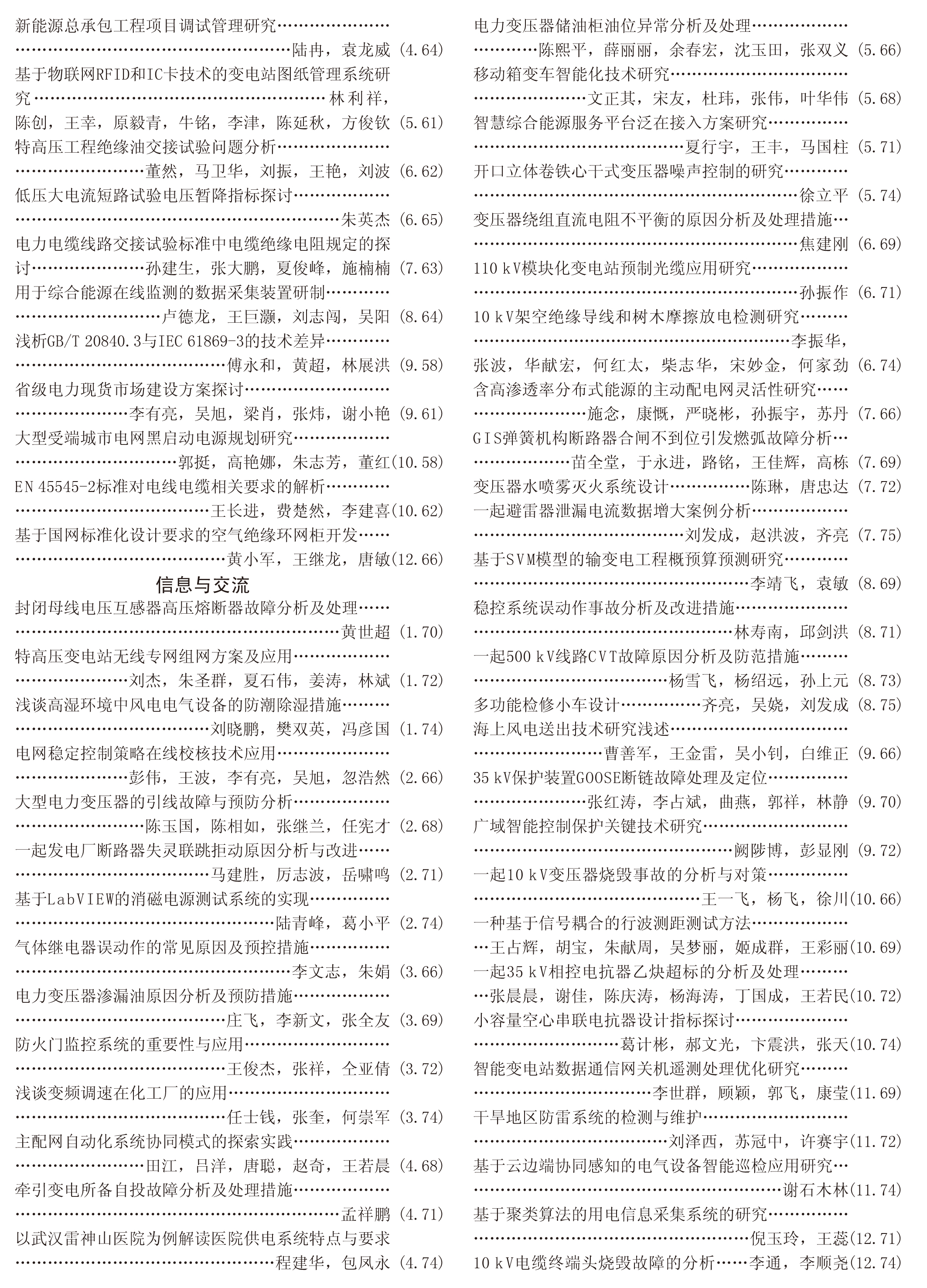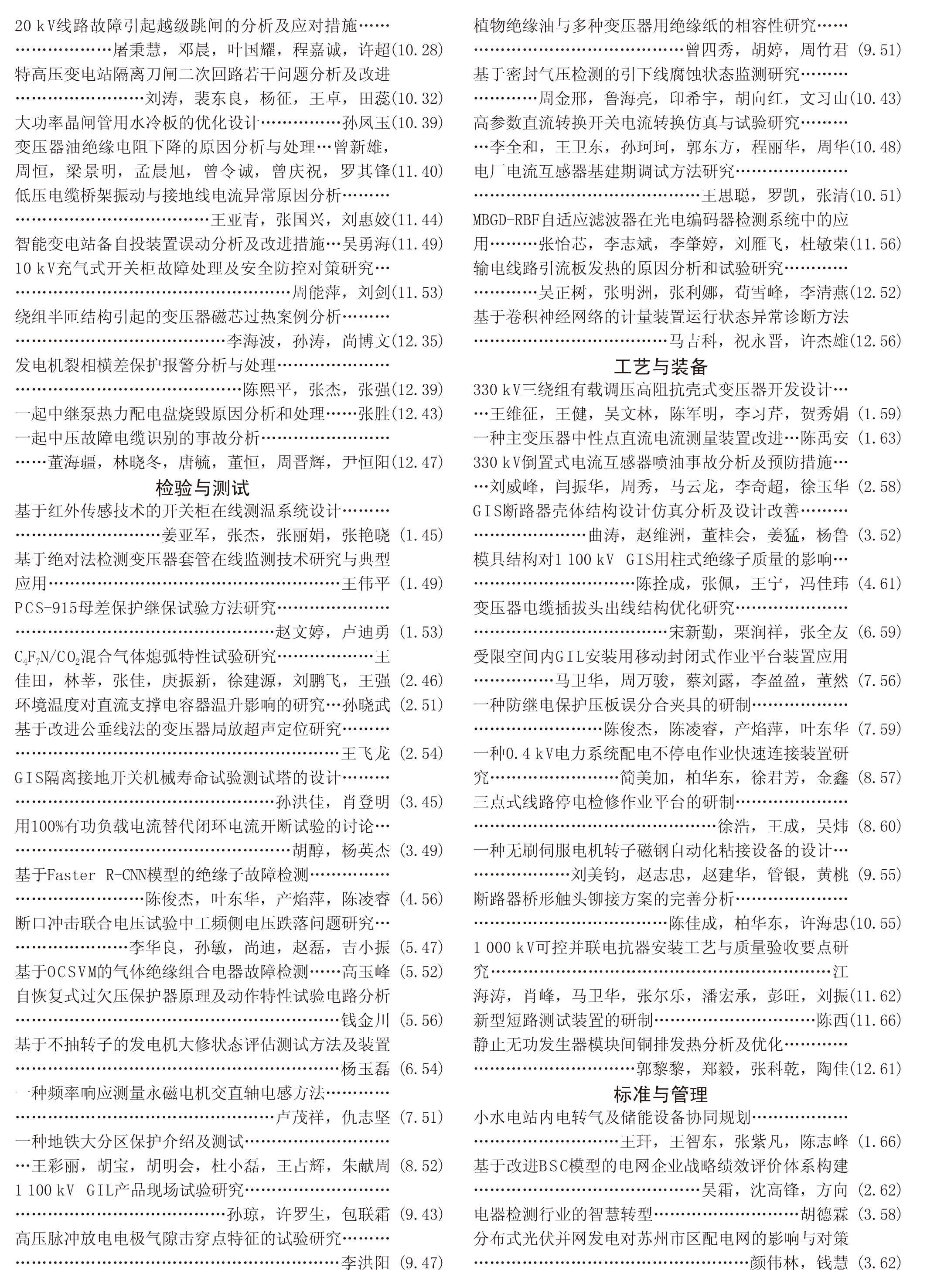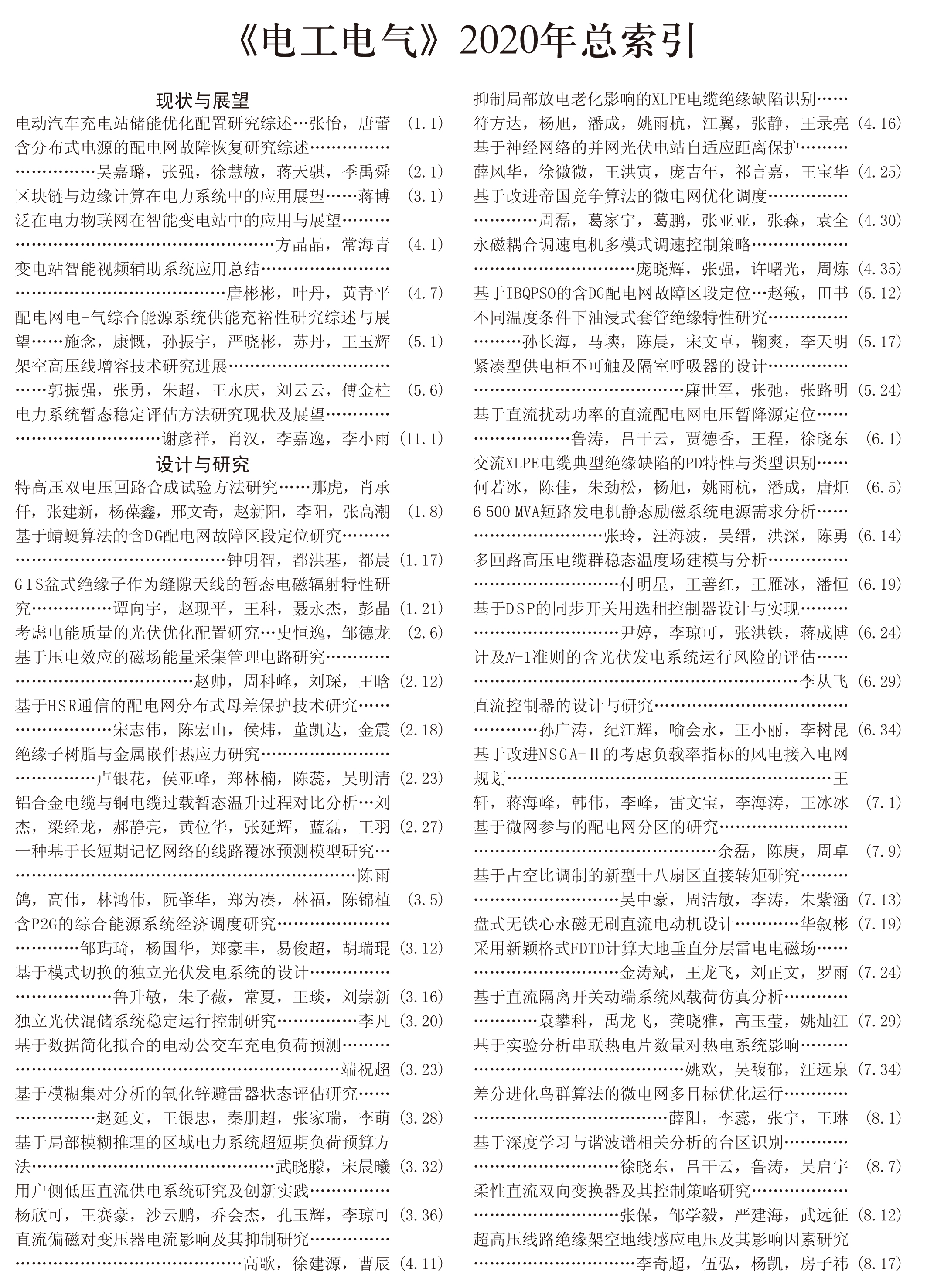 《電工電氣》2020年度總索引具體刊文如下