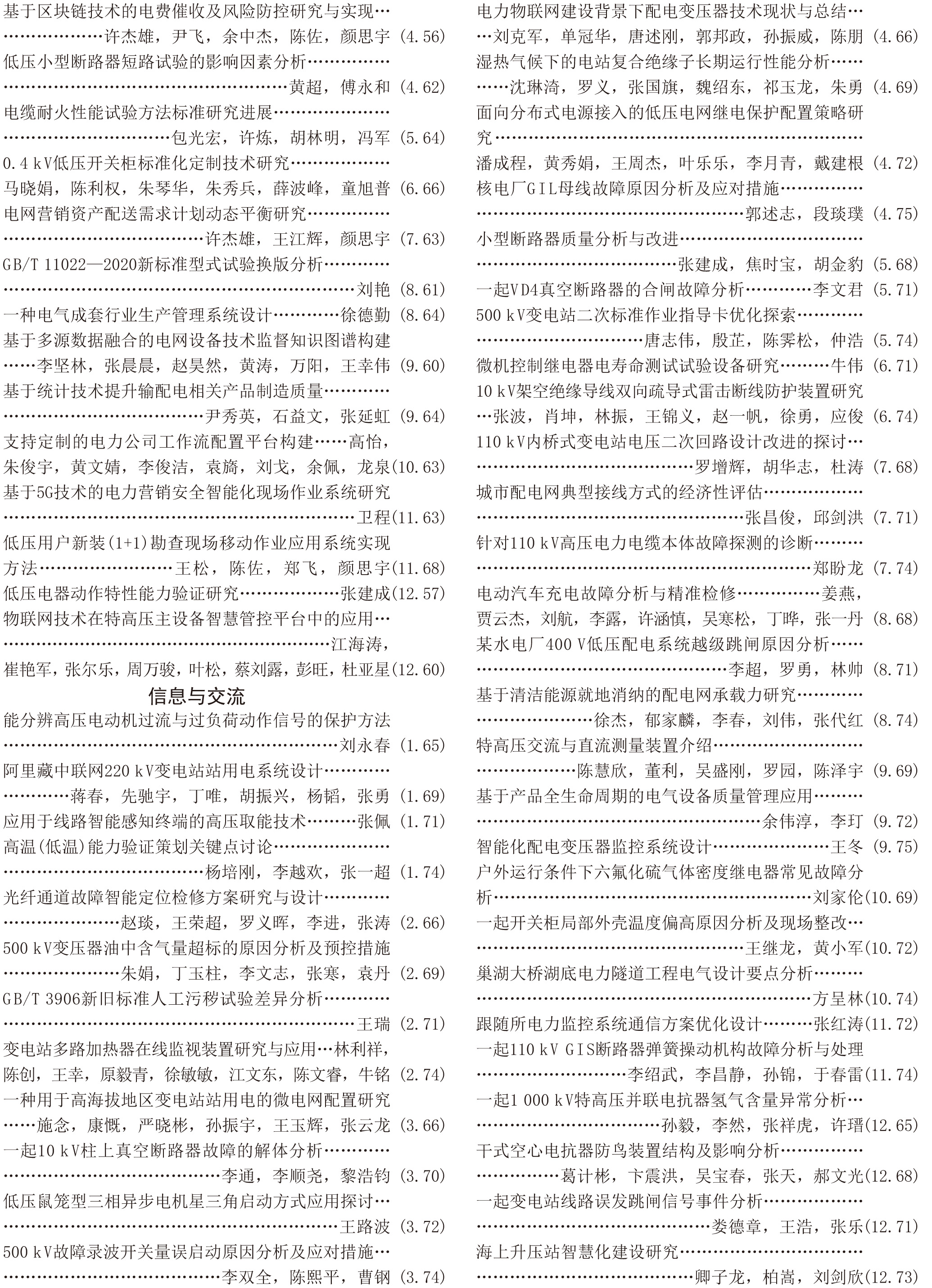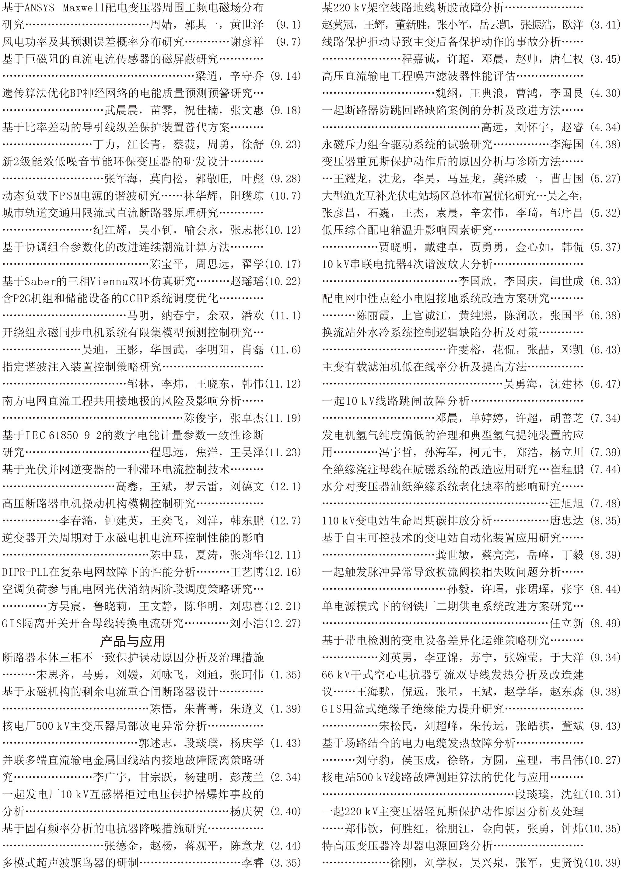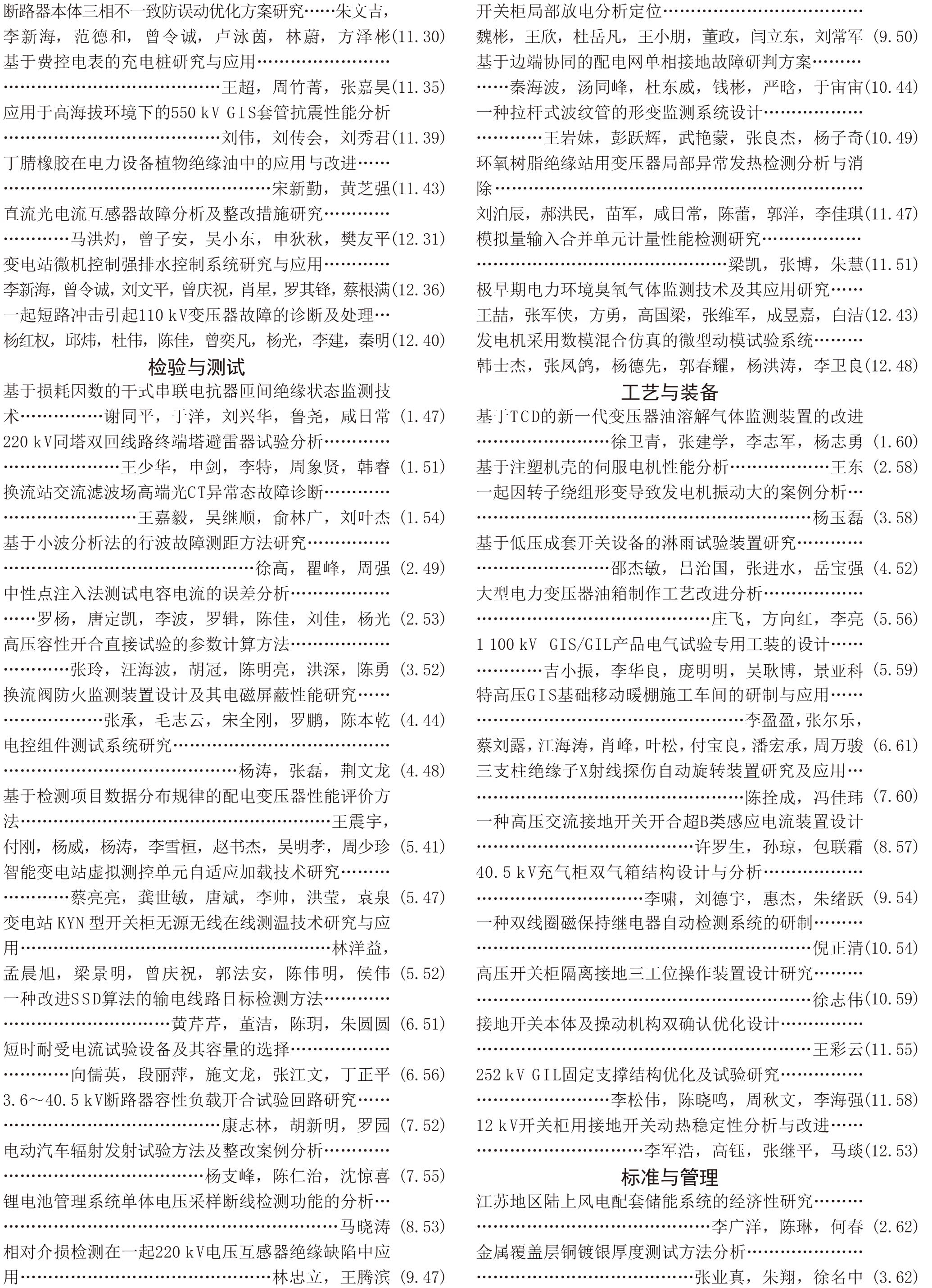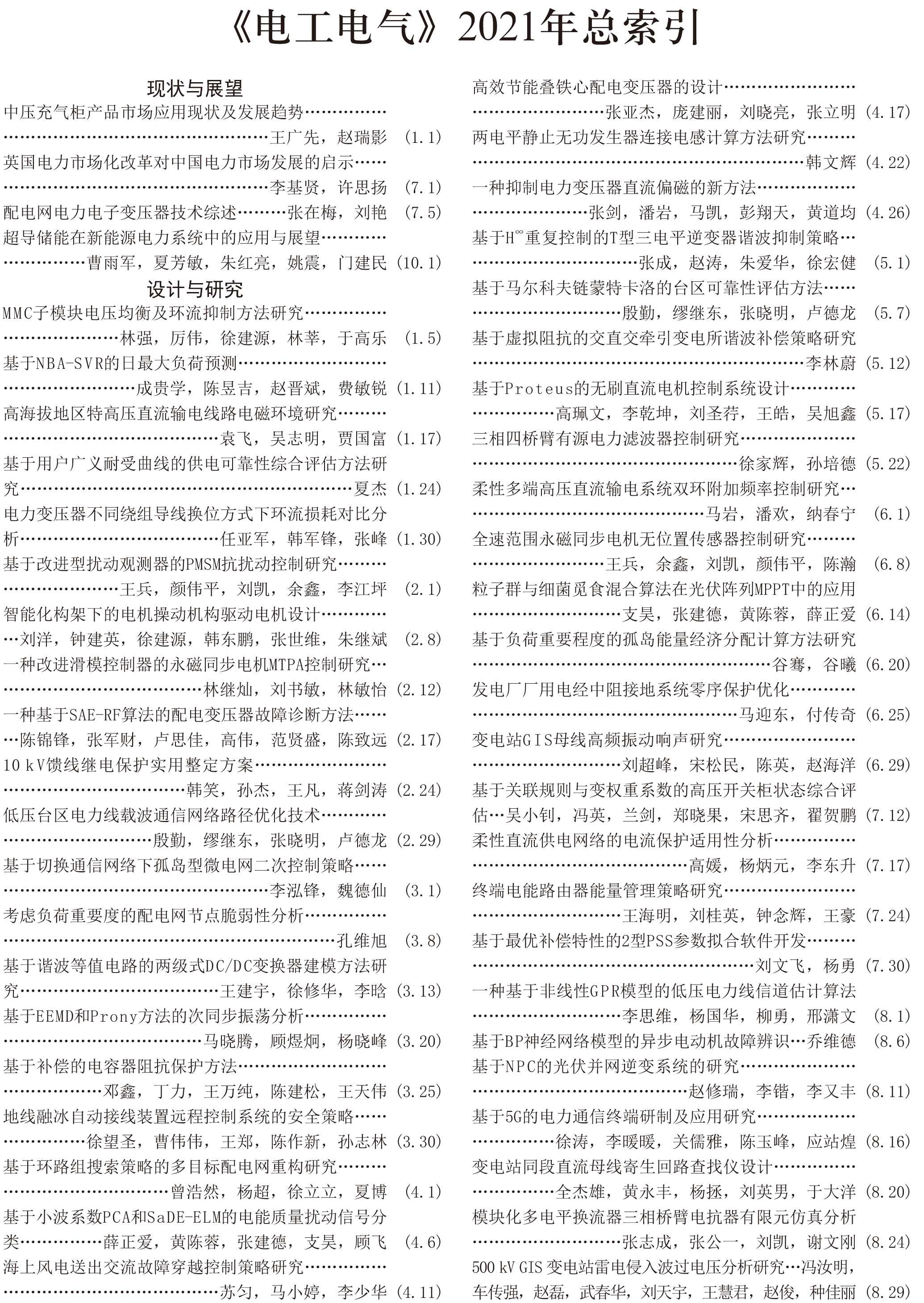 《電工電氣》2021年度總索引具體刊文如下